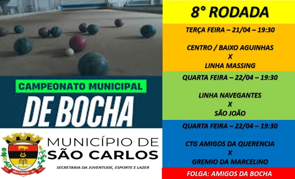 Além disso, na segunda-feira dia 27 acontecerão os congressos técnicos finais do Municipal de Voleibol Masculino e Feminino e da Copa São Carlos de Futebol de Campo.