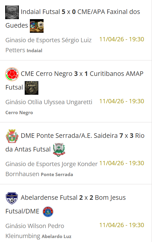 Já o Badalos Futsal recebe o Tangará Futsal no Ginásio Altair Luiz Gonçalves, em Monte Carlo.